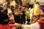 Na św. Mikołaja czekało kilkanaścioro dzieci. Przyszedł od głównych drzwi w towarzystwie dwóch ministrantów.